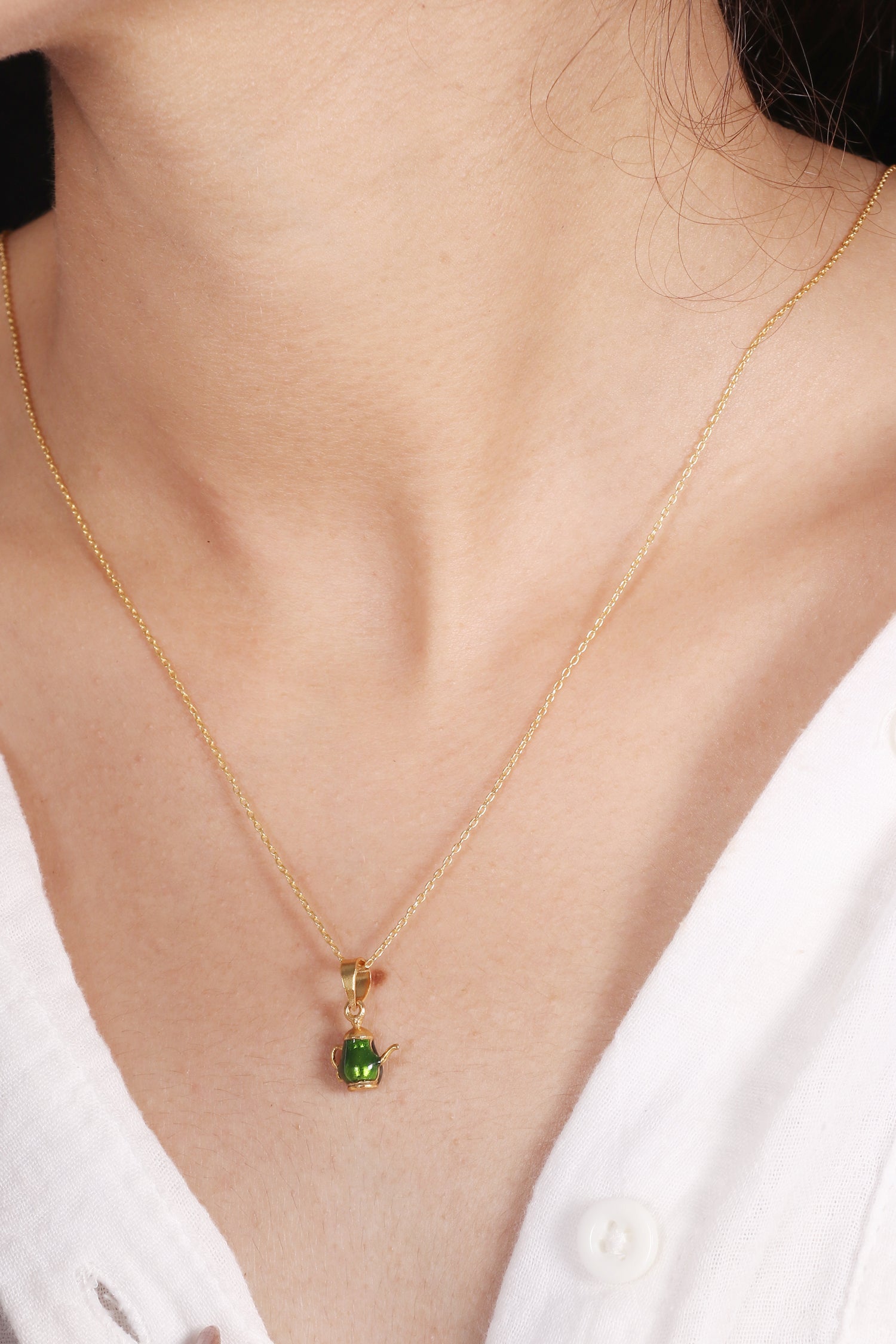 From the Swan Light Collection, this unique gold-plated pendant features a charming green teapot design. Crafted in 925 silver with fine detailing, it’s a playful yet elegant piece, perfect for everyday wear or gifting.(Pendant only, chain not included).