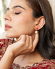 The central white stone offers a clean, timeless look, while the surrounding diamond clusters add dimension and light, catching the eye without overpowering your look. Lightweight and versatile, these earrings pair effortlessly with workwear, casual outfits, or even understated festive ensembles.