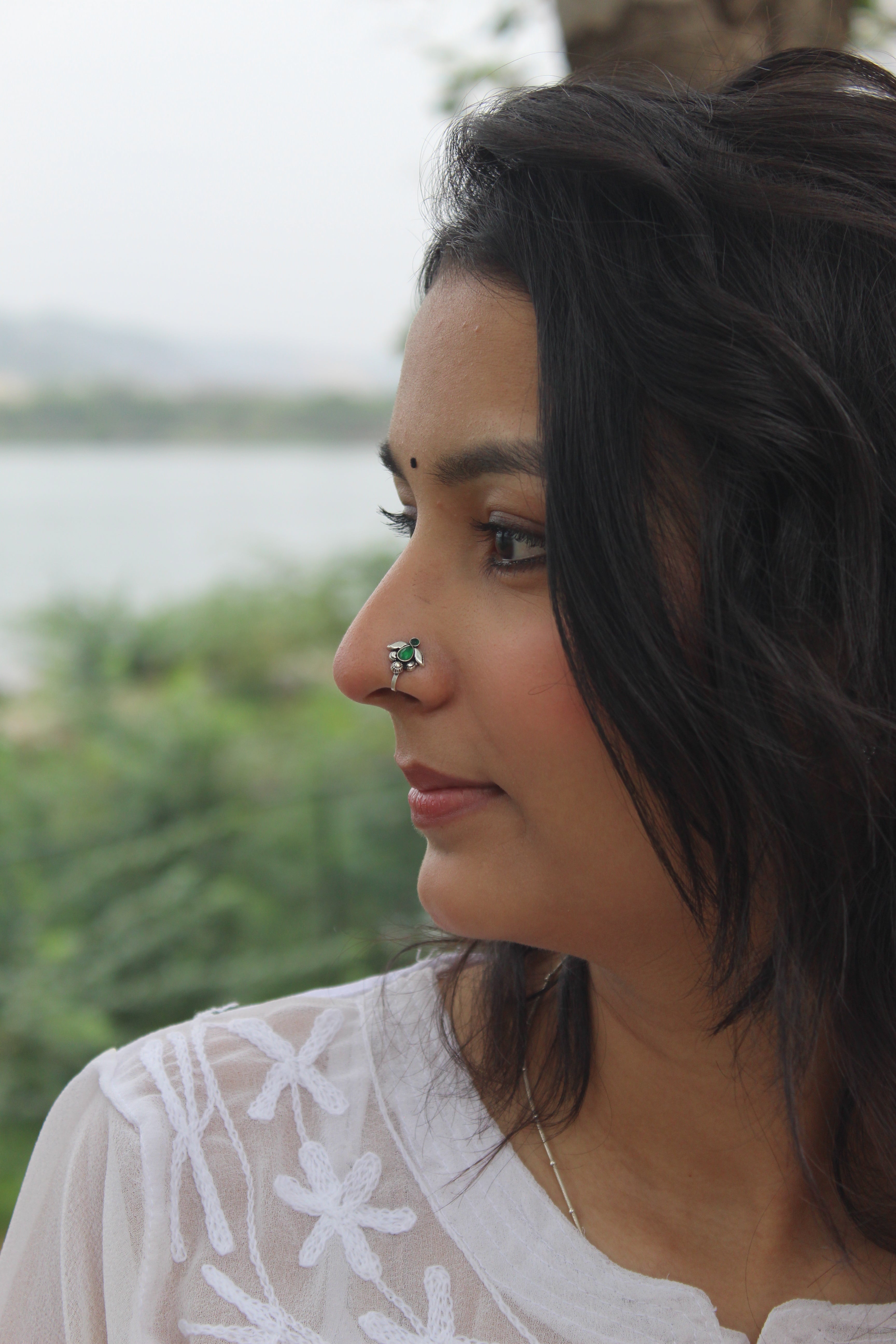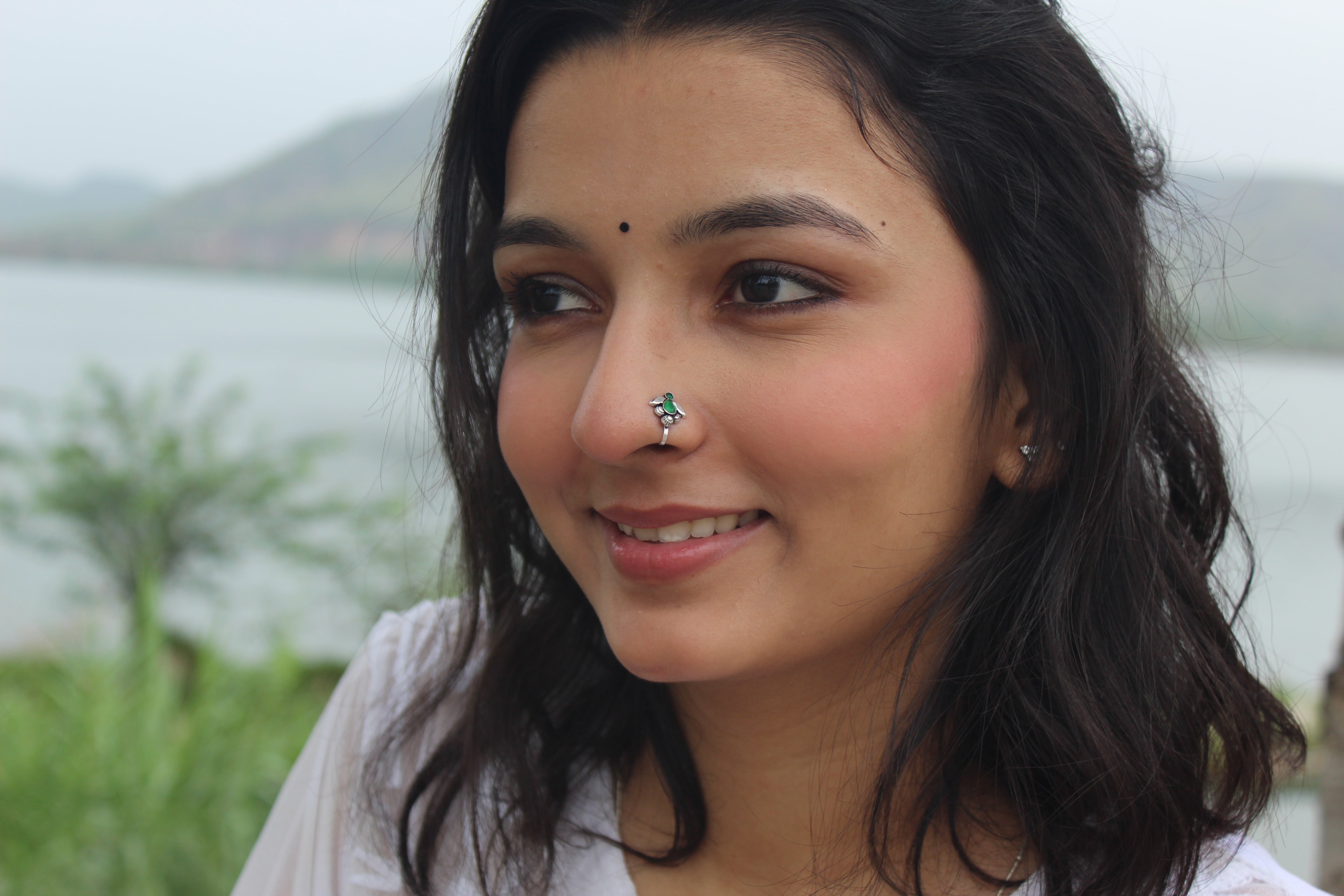 Silver Green NosepinAdd a vibrant touch of elegance to your look with this handcraftedSilver...